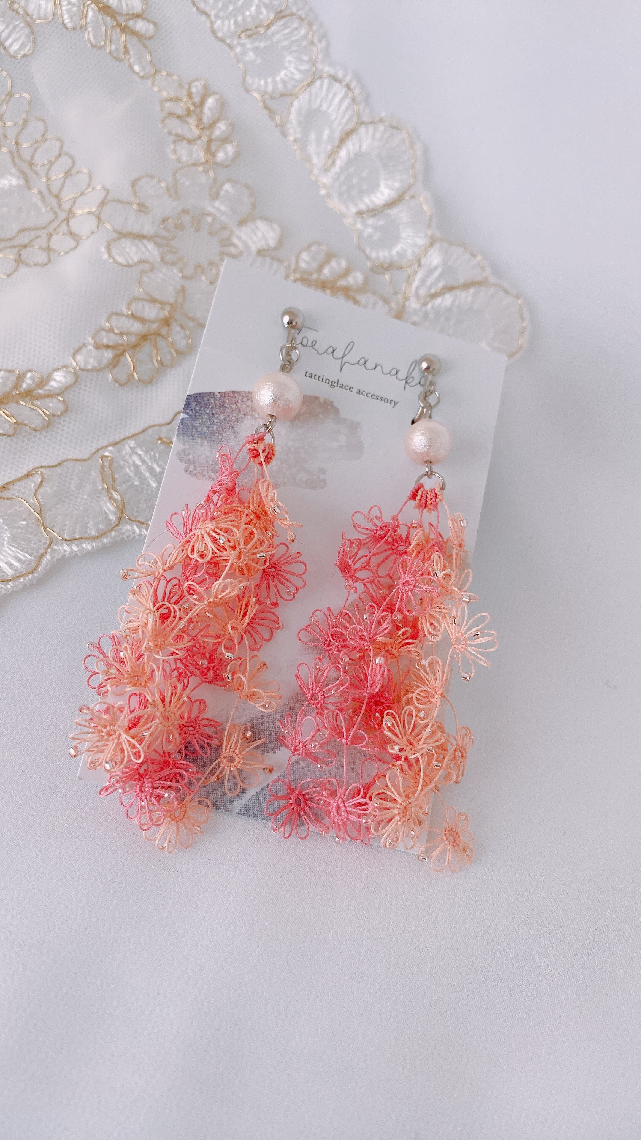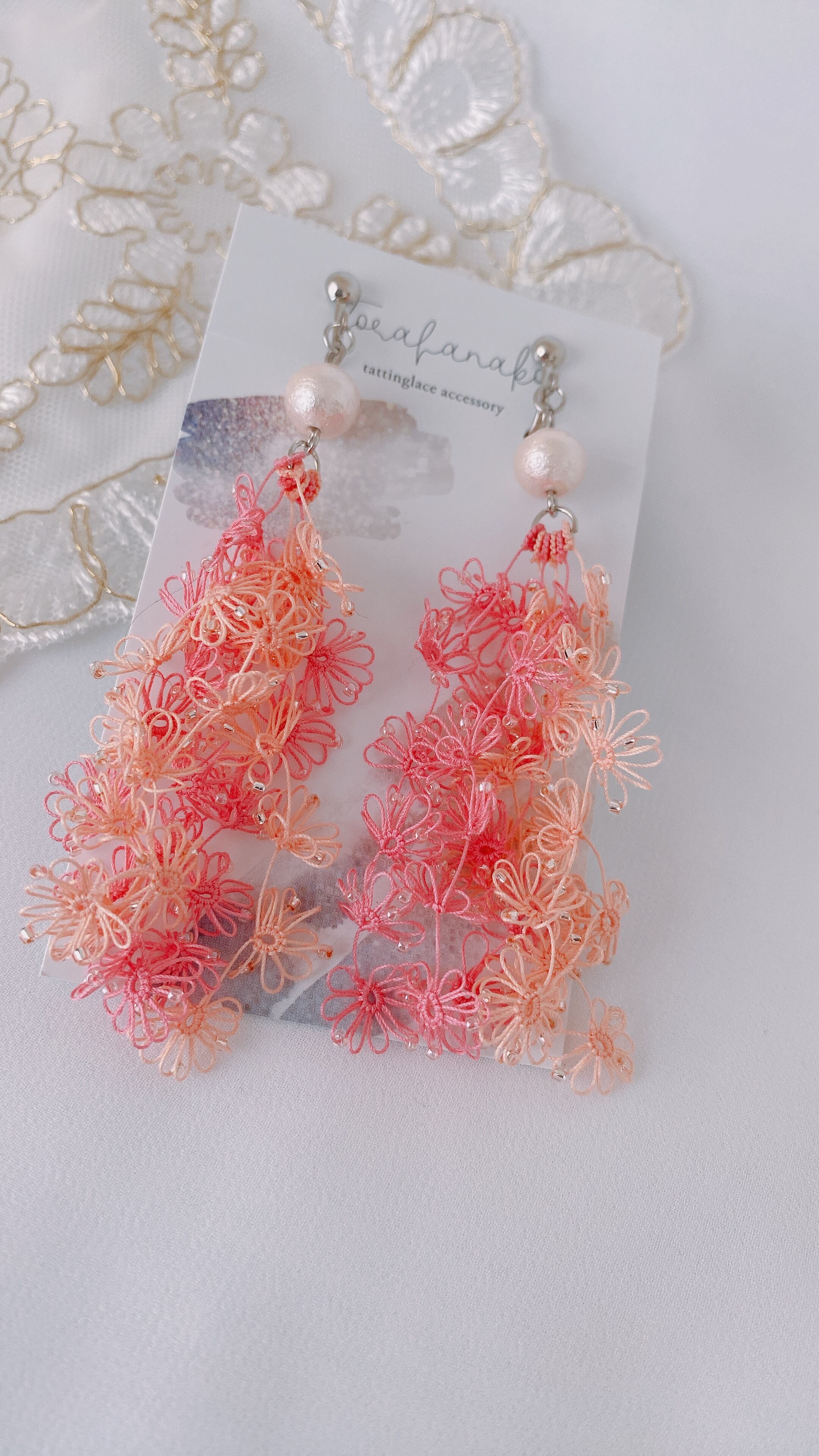 春風にそよぐ軽やかなイメージをイメージした、個性的なタティングレースのイヤリングです。