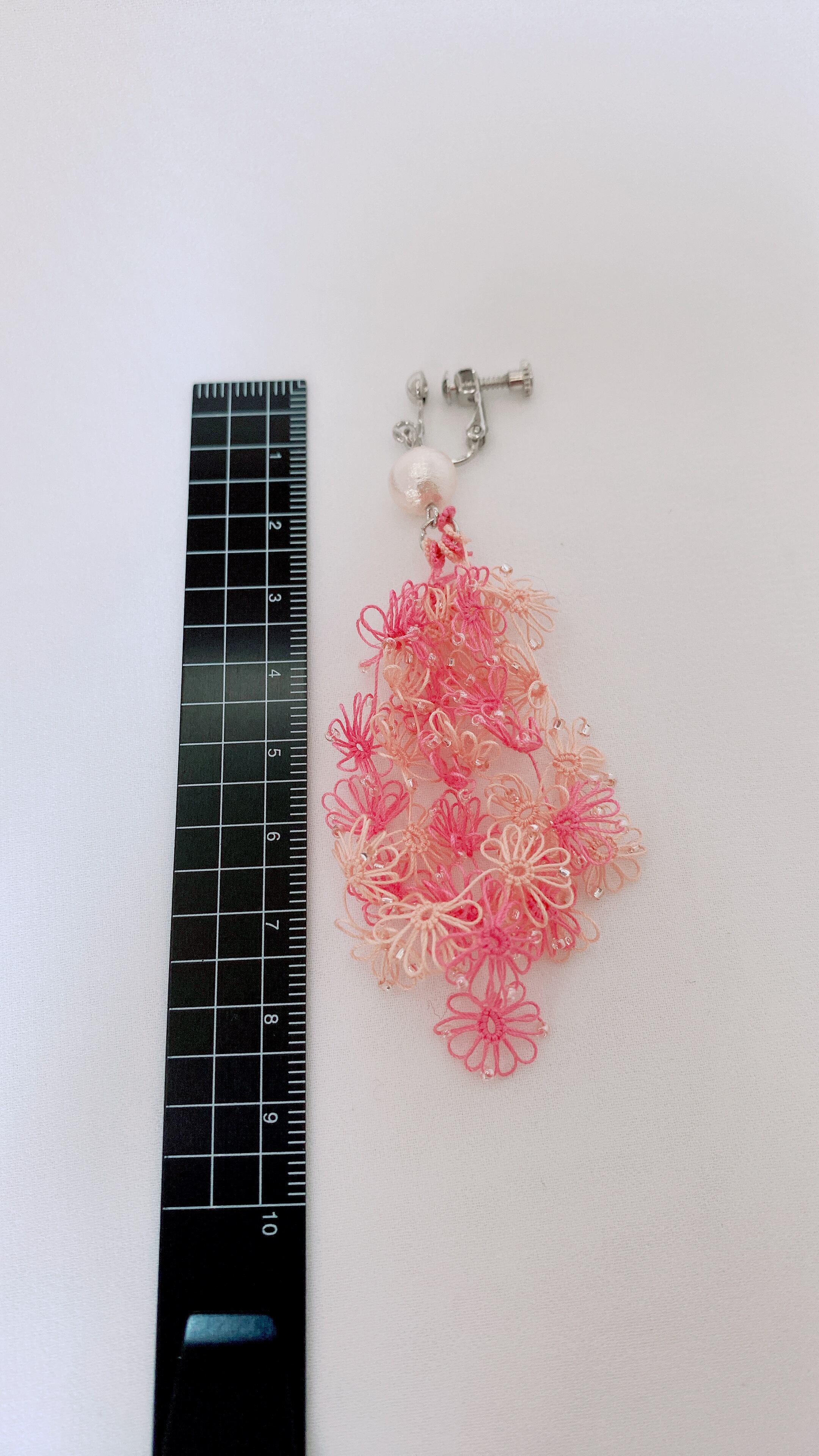春らしい華やかなピンクと優しい淡いピンクのレース糸を編んだフワフワと揺れる